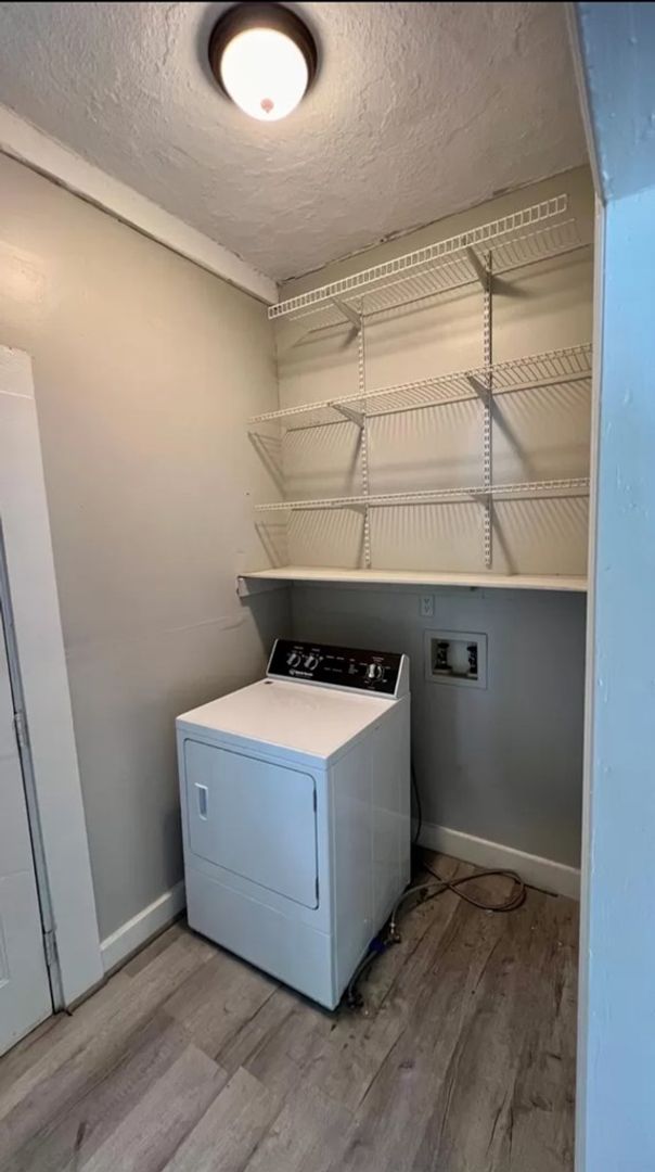 Welcome home to this adorable 3-bedroom, 1-bath charmer! Enjoy washer and dryer hookups, heated A/C units in the main living area and primary bedroom, nice paint, stylish flooring, and plenty of updates throughout. The cute upstairs bedroom adds extra character, while the fenced backyard is perfect for play, pets, or relaxing outdoors. Don’t miss out on this cozy and inviting home! Does not have central heat and air! Dryer in picture is not included.